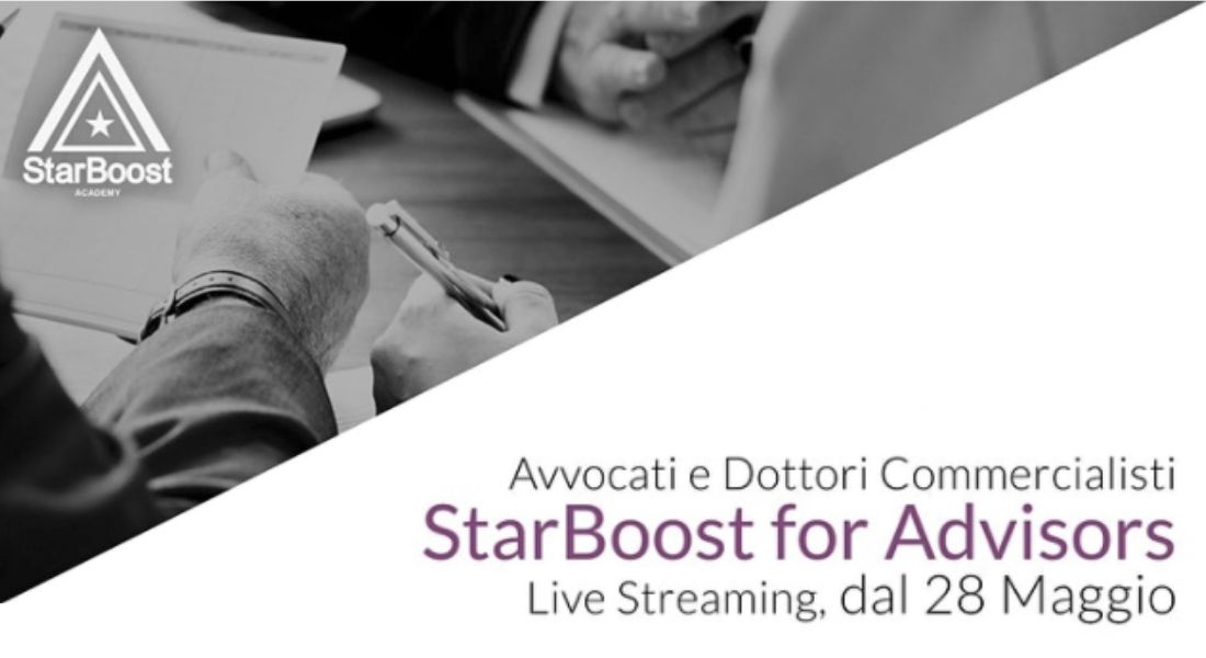Una nuova edizione di STARBOOST FOR ADVISORS sta per iniziare, in live streaming su scala nazionale. Il percorso si compone di 12 ore di formazione distribuite su 5 giornate (una volta a settimana) a partire da giovedì 28 maggio utili per scoprire il modello StarBoost e per approfondire gli strumenti giuridico economici che possono essere messi a disposizione degli imprenditori in fase di avvio di una nuova impresa o di rilancio di una già avviata.