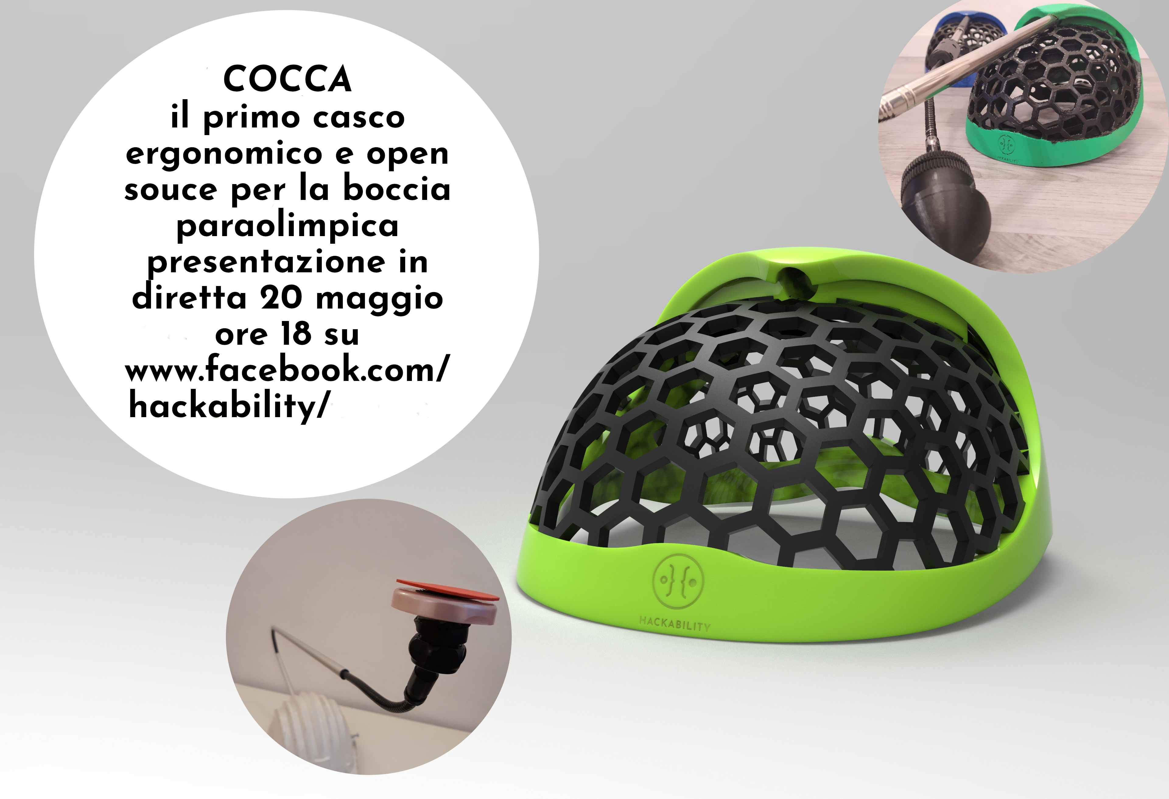Cocca è il primo caschetto ergonomico e customizzato realizzabile in stampa 3D per la boccia paraolimpica, ideato da Cocca Visconti, campionessa paraolimpica di boccia e da Etra Rossi designer, con Davide Visconti e il supporto di Maurizio Contu Marco Bocca Giuseppe Becci. COCCA è stato realizzato nell’ambito dell’HACKABILITYLAB con il contributo di Fondazione CRT.