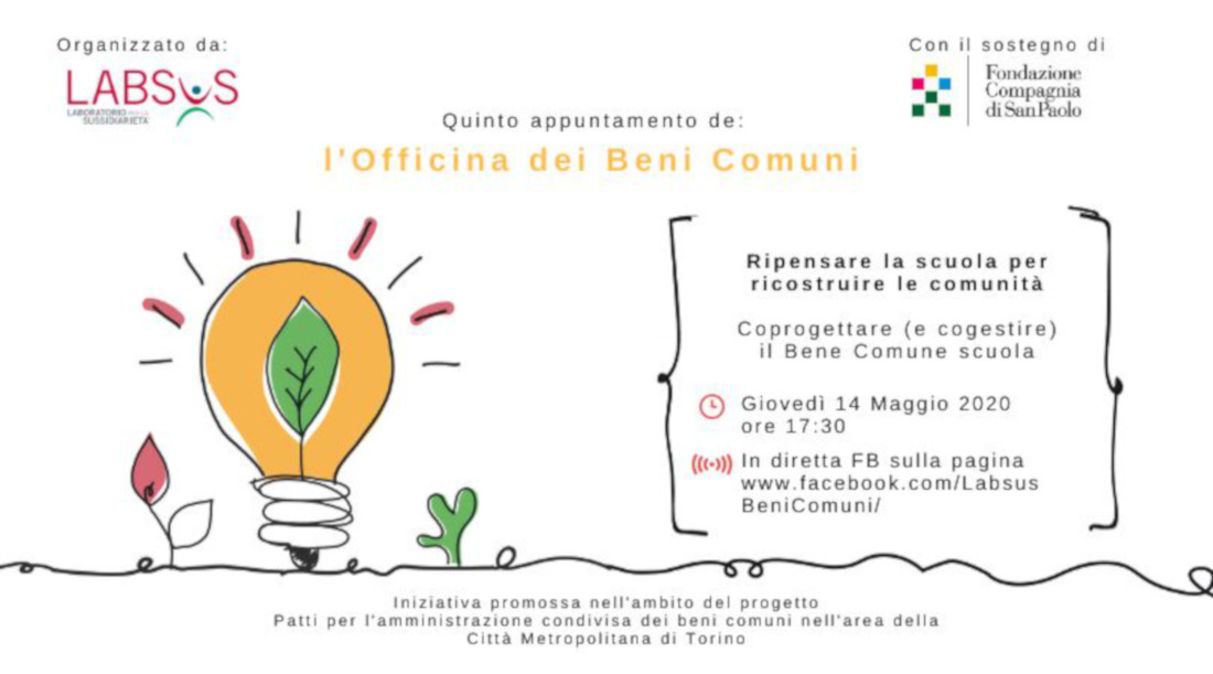 Quinto appuntamento de “L’Officina dei Beni Comuni”, evento organizzato da Labsus nell’ambito del progetto “Patti per l’amministrazione condivisa nell’area metropolitana di Torino” con il sostegno di Fondazione Compagnia di San Paolo.