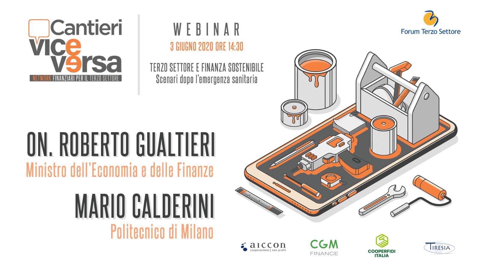 Mercoledì 3 giugno alle ore 14:30 si terrà il webinar “Terzo Settore e finanza sostenibile: scenari dopo l’emergenza sanitaria”, primo incontro della II edizione di “Cantieri ViceVersa – Network finanziari per il Terzo Settore”, progetto promosso dal Forum Nazionale del Terzo Settore in collaborazione con il Forum per la Finanza Sostenibile.