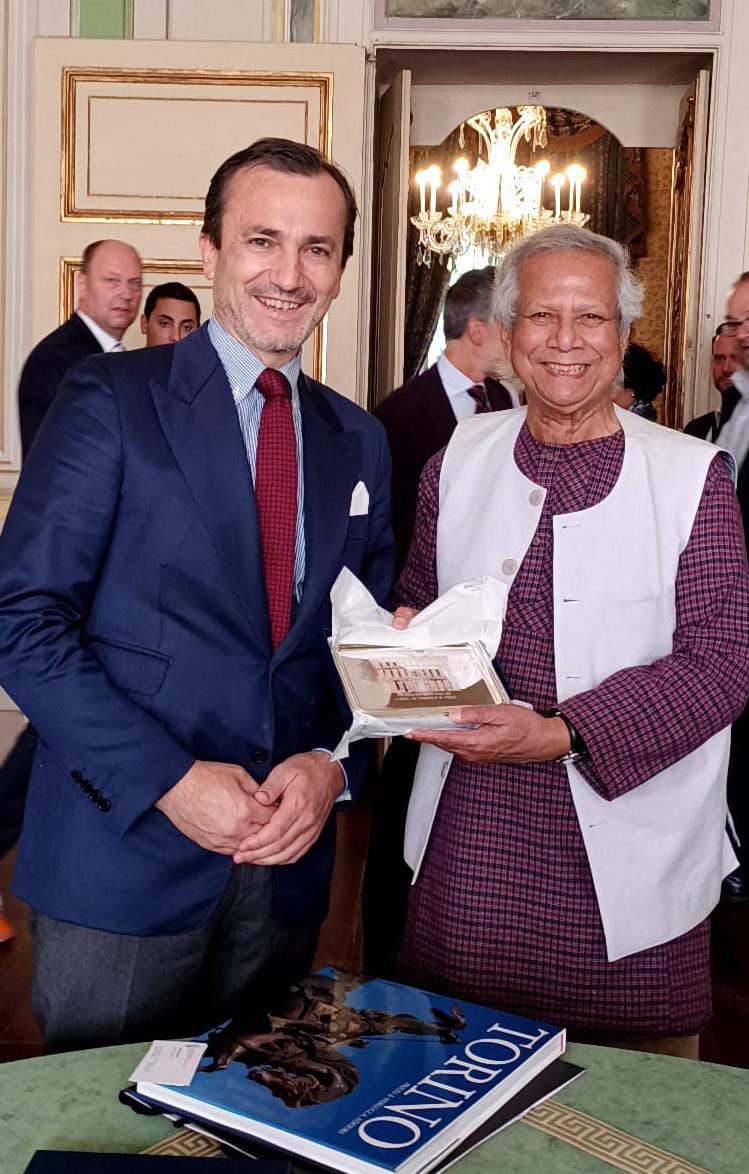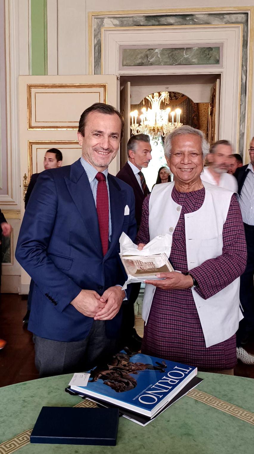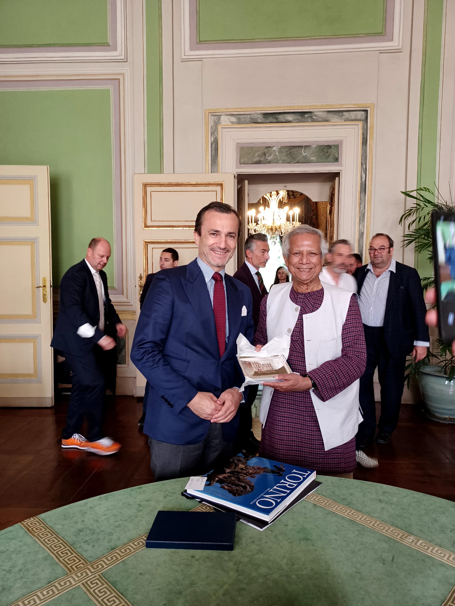 Nel pomeriggio ha incontrato nella sede storica di via Carlo Alberto 16 il presidente della Camera di commercio di Torino, Dario Gallina: “Ricevere il professor Yunus presso la sede della Camera di commercio è una tappa emozionante e significativa di un percorso avviato molti anni fa con lungimiranza dal nostro ente con la creazione del Comitato per l’Imprenditorialità sociale. Un percorso che ha permesso di affermarci come modello internazionale nelle politiche di sviluppo dell’economia sociale, anche grazie all’esperienza di Torino Social Impact, piattaforma territoriale che conta ormai 220 partner, dedicata a questi temi. La scelta di candidarci per ospitare il Global Social Business Summit 2022 il prossimo novembre, dopo l’organizzazione del GSG For Impact Investment lo scorso 23-25 maggio ed il meeting di Social Value International previsto ad ottobre, fa del 2022 un anno speciale, che vede il nostro territorio protagonista indiscusso del dibattito globale sull’impact economy”.