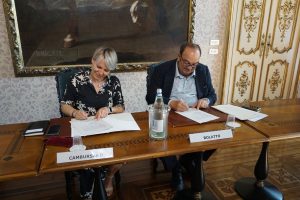 Sonia Cambursano, Consigliera della Città metropolitana di Torino e Guido Bolatto, Segretario Generale della Camera di commercio di Torino alla firma dell’accordo