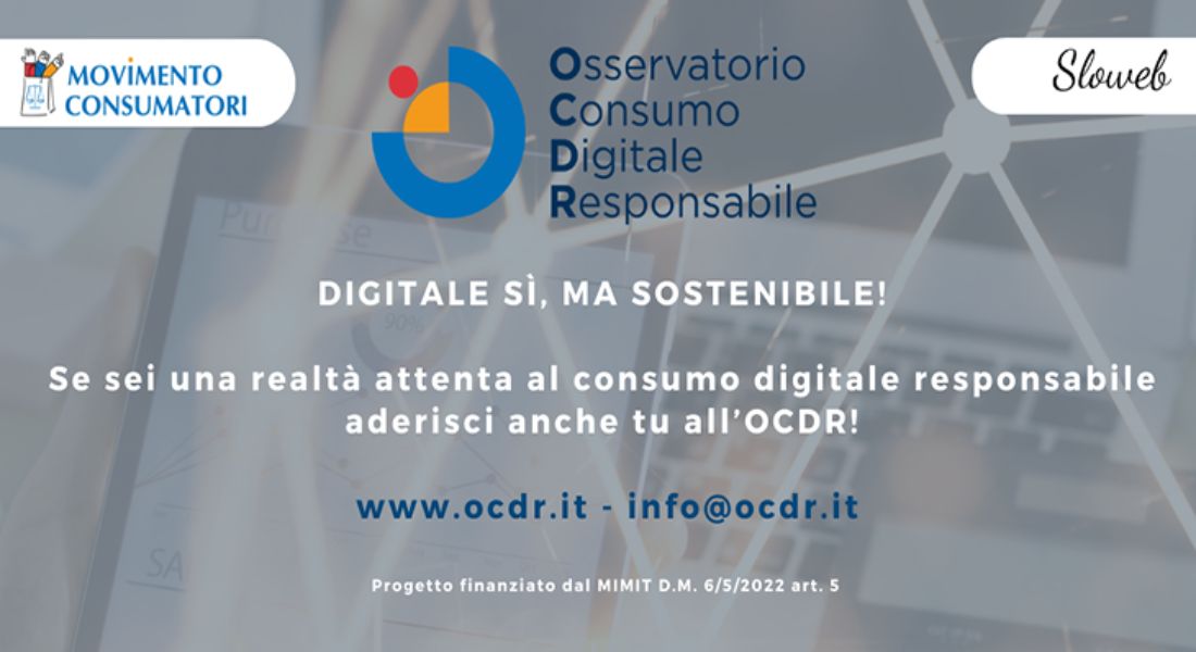 Il Movimento Consumatori APS, in collaborazione con Sloweb, ha lanciato l’Osservatorio Consumo Digitale Responsabile (OCDR), un’iniziativa mirata a promuovere la consapevolezza e la responsabilità nel consumo delle tecnologie digitali. Questa iniziativa si colloca all’interno del progetto “AgEnDa: Assistere, Educare, Diffondere”, finanziato dal Ministero delle Imprese e del Made in Italy, con l’obiettivo di favorire la transizione digitale.