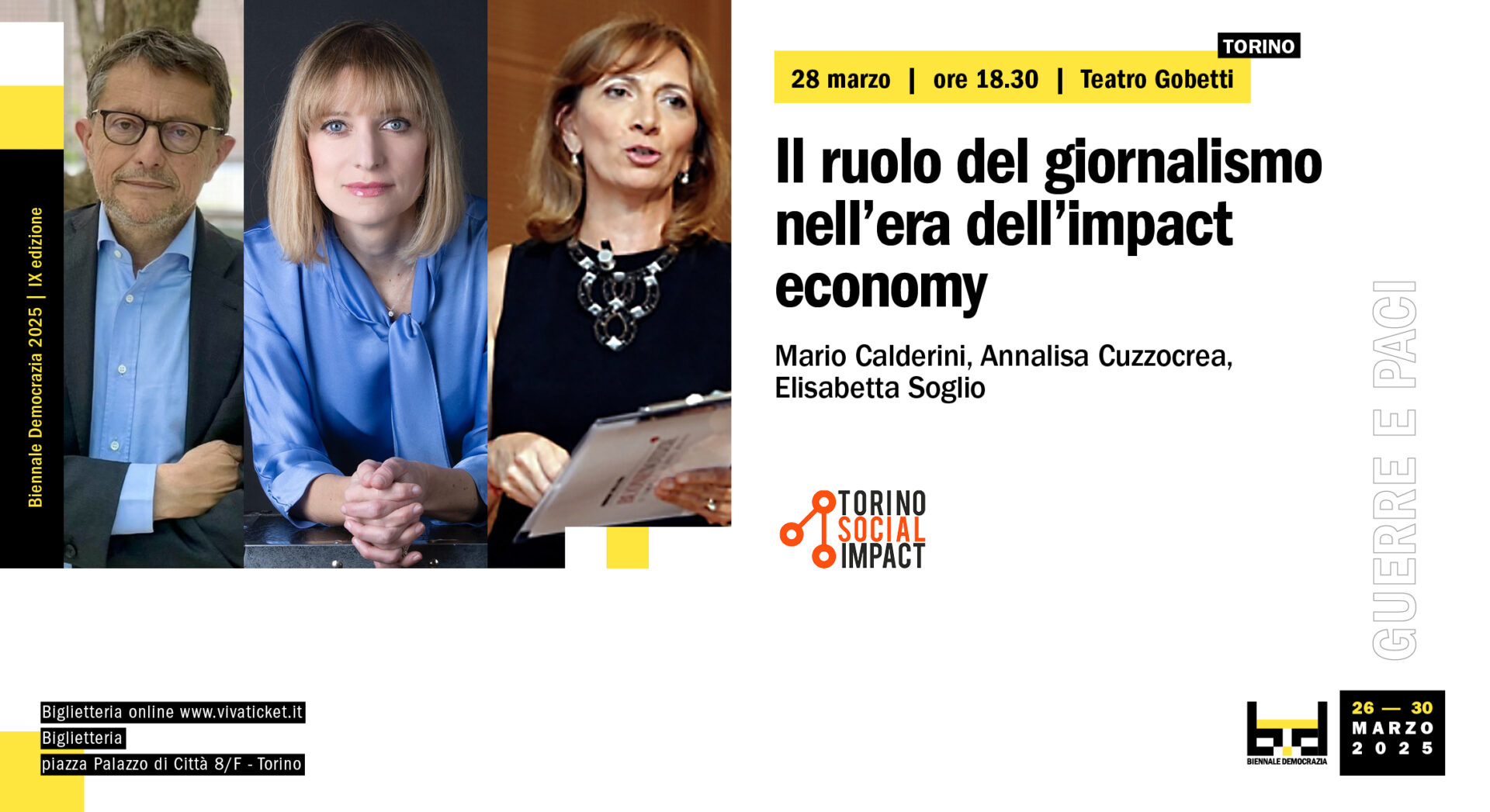 Su questi ed altri quesiti si sono confrontati Mario Calderini, economista, docente al Politecnico di Milano e portavoce di Torino Social Impact, con le giornaliste Elisabetta Soglio, responsabile di Buone Notizie – L’Impresa del bene, pagine settimanali del Corriere della Sera, e Annalisa Cuzzocrea, editorialista e inviata di Repubblica.