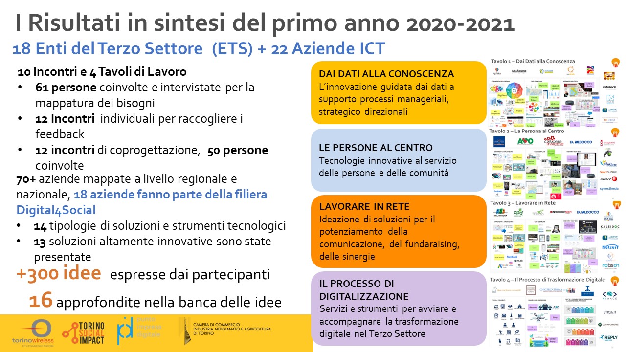 - Soluzioni tecnologiche innovative per il terzo settore generate: 16 idee raccolte nella banca delle idee