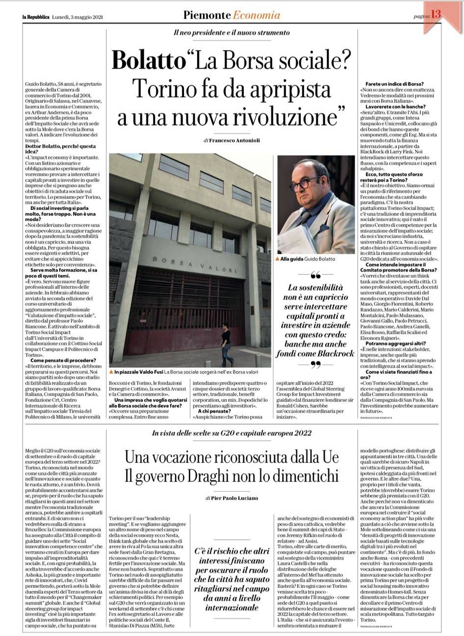 Il gruppo di lavoro che lo ha realizzato ha visto il contributo di Camera di commercio di Torino; Fondazione Compagnia di San Paolo; Fondazione CRT; Centro Internazionale di Ricerca sull’impatto sociale Tiresia del Politecnico di Milano; Università Bocconi; Università di Torino; Fondazione Cottino; la società Avanzi, specializzata in progetti di sostenibilità, che già nel 2009 aveva realizzato uno studio sul tema.Sono state analizzate le migliori pratiche internazionali di Borse Sociali esistenti attualmente: SSX – Social Stock Exchange (UK), IIX – Impact Investment Exchange (Singapore and Mauritius), JSSE – Jamaica Social Stock Exchange, MM – Mission Markets (USA), SVX – Canada Social Venture Connexion, Bolsa de Valores Sociais (Brazil), SASIX – South African Social Investment Exchange (South Africa), KSIX – Kenya Social Investment Exchange (Kenya), LGX – Luxembourg Green Exchange, Bolsa Social (Spain). L’analisi ha permesso di tracciare le caratteristiche principali di queste esperienze e di individuare i punti di forza e debolezza.