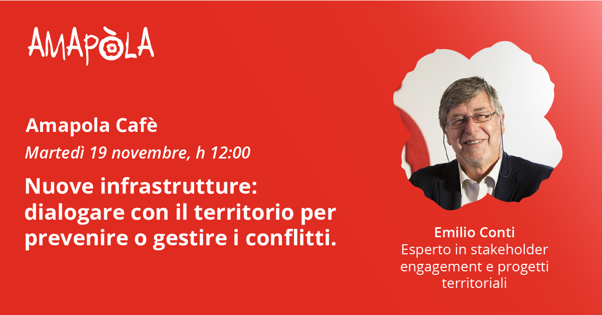 In the webinar New Infrastructure: Engaging with Communities to Prevent or Manage Conflicts, Emilio Conti, an expert in stakeholder engagement and a leader in territorial project management, along with Micol Burighel, Head of Communication at Amapola, will provide an overview of the causes behind these disputes and, more importantly, solutions. Key points of the discussion will include Amapola’s methodology, which entails comprehensive mapping of local and national stakeholders, assessment of social and environmental factors, and the development of transparent and participatory communication.