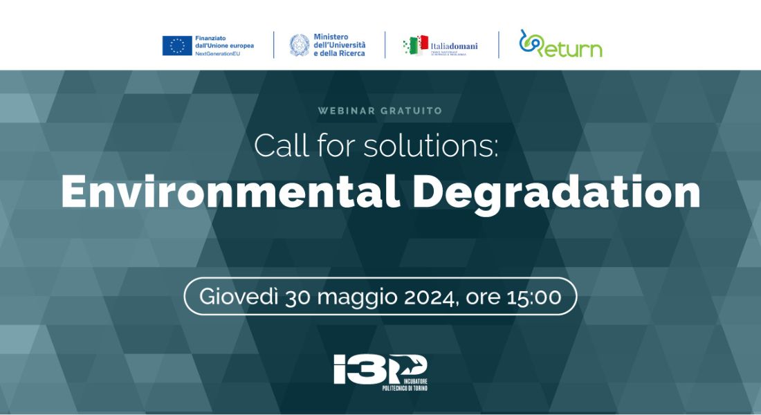 The fourth and final event in this series, dedicated to the vertical segment Environmental Degradation (related to Spoke VS4 of the project), will take place on Thursday, May 30, 2024, at 3:00 PM, as a free online webinar. During this digital meeting, held in Italian, the RETURN project and its calls for SMEs will be presented, with a focus on mitigating environmental degradation risks such as forest fires, anthropogenic impacts on marine-coastal ecosystems, and chemical contamination in the environment. Additionally, a startup from the I3P network will share its innovative entrepreneurial project in this field.