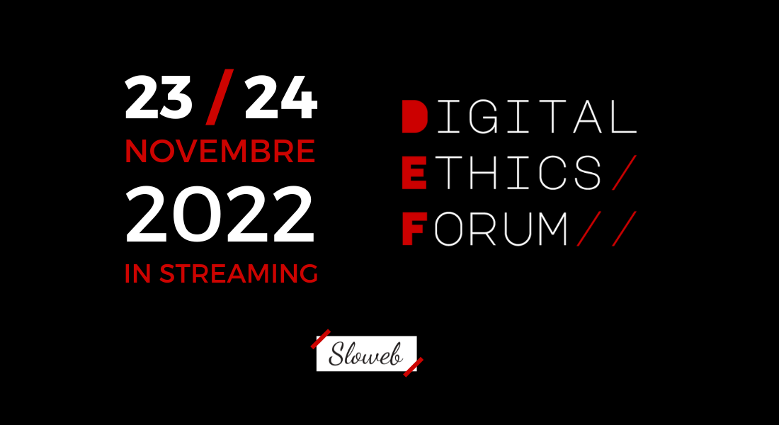 Sloweb Association for 2022 proposes the fourth edition of the Digital Ethics Forum, two days with conference panels and special events to explore some of the most pressing issues concerning ethics in the design, production, distribution and use of digital technologies.