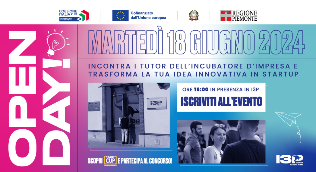 Do you have an innovative idea and wonder where to start to bring it to life? Join us for the Open Day at I3P, the Innovative Enterprises Incubator of the Polytechnic University of Turin, on Tuesday, June 18, 2024, in the afternoon. This is your chance to meet I3P’s startup mentors for free and learn how to turn your idea into a successful business project!