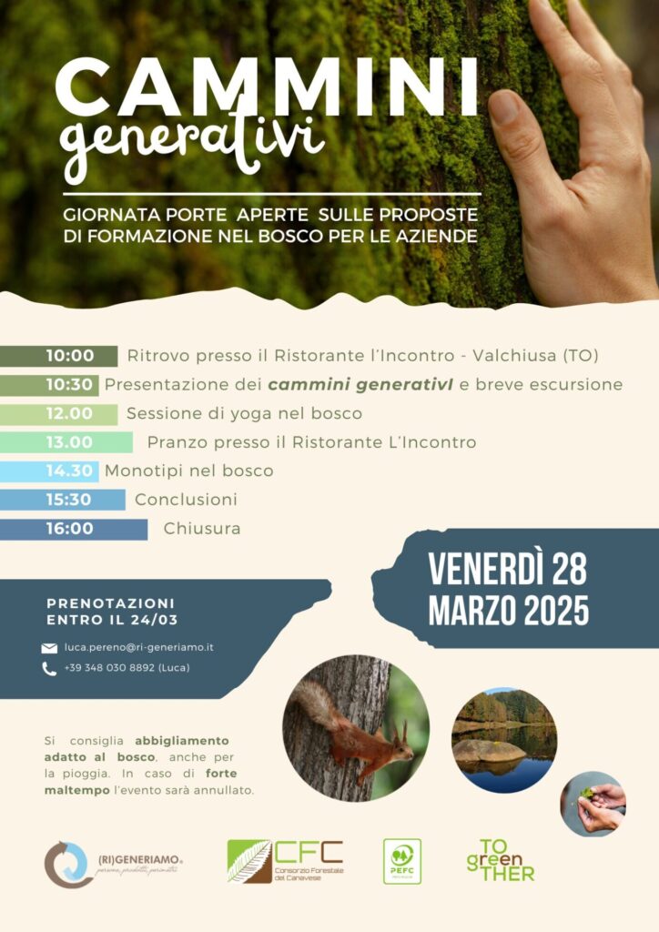 (RI)GENERIAMO in collaboration with Consorzio Forestale del Canavese (Canavese Forest Consortium) and PEFC Italy is organizing an “open doors” day to present Cammini Generativi (Generative Paths), our training offer for business.