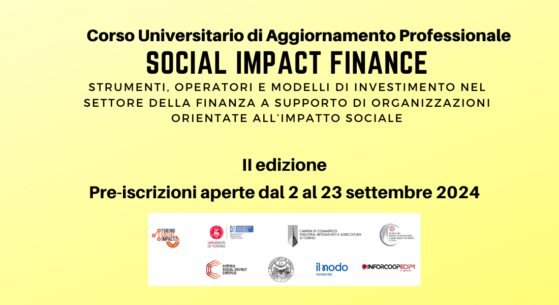 The CUAP Social Impact Finance program, coordinated by Professor Paolo Biancone, is hosted by the Chamber of Commerce of Turin as part of the Torino Social Impact Strategic Plan and is implemented by the School of Management and Economics of the University of Turin in collaboration with the Polytechnic University of Turin (members of the Committee for Social Entrepreneurship), the Order of Chartered Accountants and Accounting Experts of Turin, the Piccatti Milanese Foundation, Cottino Social Impact Campus, Tiresia, the training bodies of the Cooperative Centrals (Consorzio Il Nodo for Confcooperative Piemonte Nord and Inforcoop Ecipa Piemonte for LegacoopPiemonte), and the Compagnia di San Paolo Foundation.
