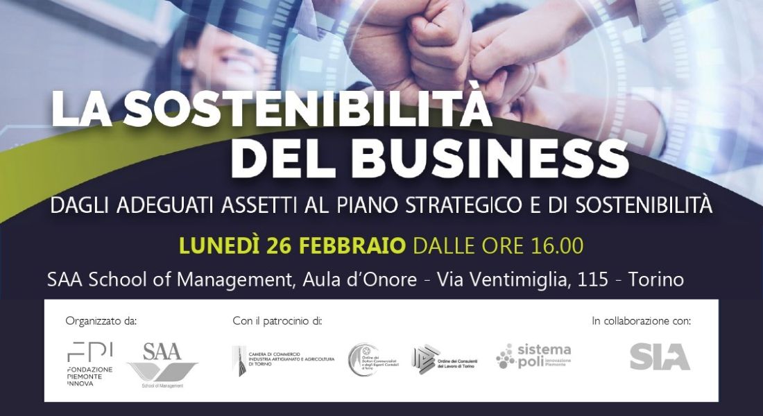 On Monday, February 26, at 4:00 PM, SAA – School of Management, Fondazione Piemonte Innova, Torino Chamber of Commerce, and Strategy in Action Italia will delve into the close connection between a solid corporate structure and the creation of a strategic and sustainability plan.