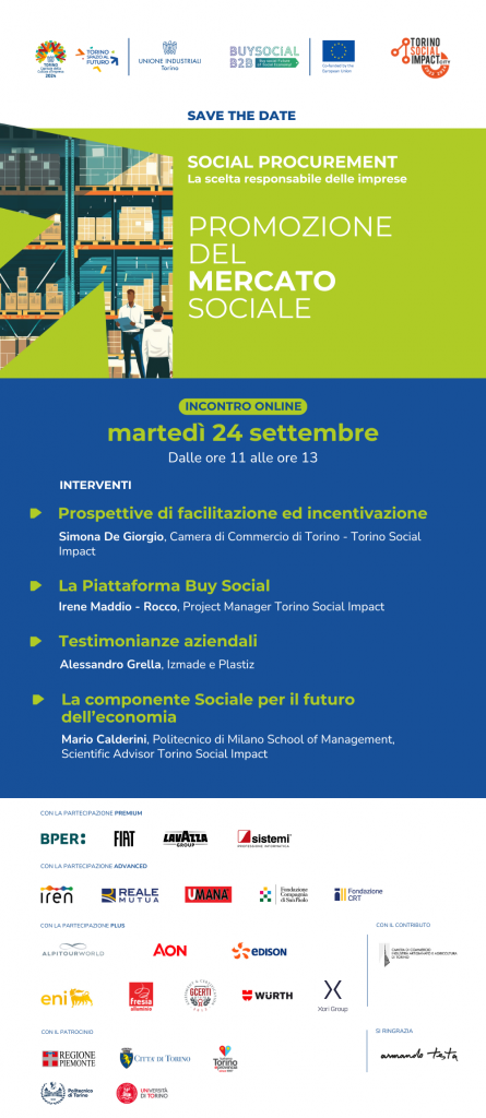 From the collaboration between the Chamber of Commerce of Turin, Torino Social Impact, Unione Industriali Torino, and Fondazione Compagnia di San Paolo, a series of online meetings has been created to delve into the topic of social procurement, promoting responsible business choices.