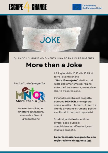 The event is part of the European project MENTOR, which investigates how satire, comics, theatre, and irony become political and cultural tools in repressive contexts.