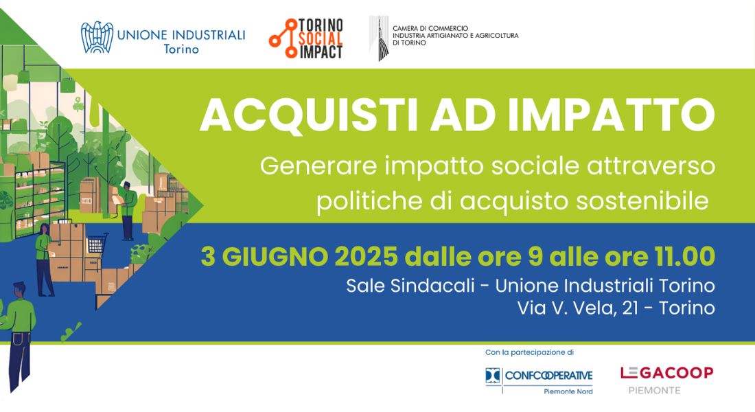 A queste domande cercheremo di rispondere nel corso dell’incontro “Acquisti ad Impatto“, un appuntamento promosso da Unione Industriali Torino, realizzato in collaborazione con Torino Social Impact, Camera di Commercio di Torino, con la partecipazione di Confcooperative Piemonte Nord e LegaCoop Piemonte.