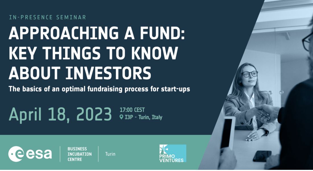 Il seminario sarà presentato da Leo Italiano, Senior Consultant di I3P e Program Manager di ESA BIC Turin, e condotto da Federico Cuppoloni, Senior Associate di Primo Ventures.