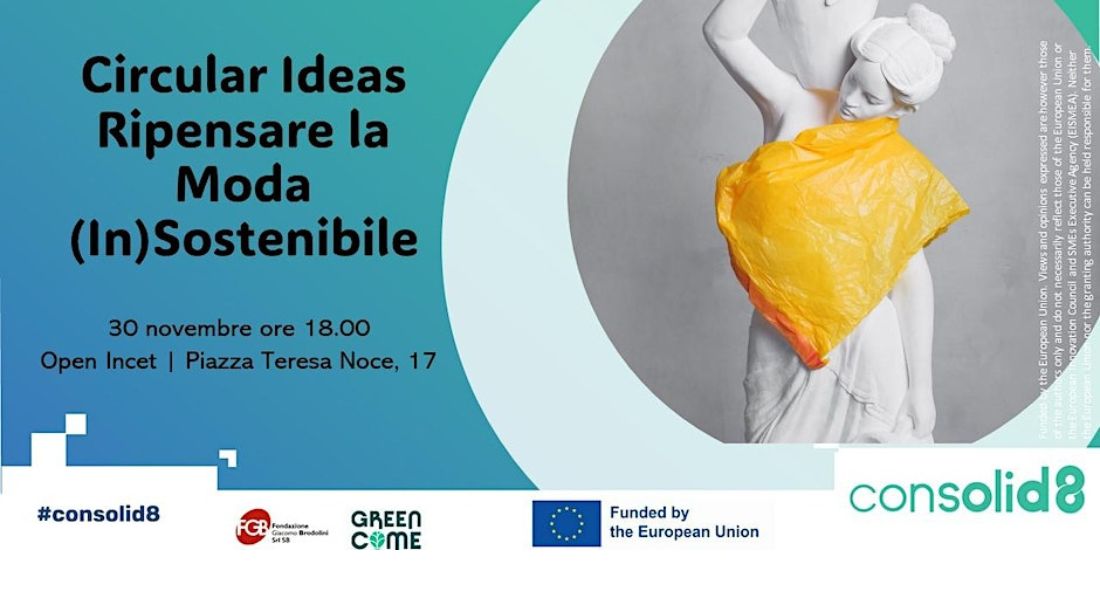 Circular Ideas – Ripensare la Moda (In)Sostenibile è un hackathon organizzato da Fondazione Giacomo Brodolini Srl SB nell’ambito del Progetto Consolid8 – Consolidating Deep & Inclusive Social Innovation Ecosystems, finanziato dalla Commissione Europea, che ha come obiettivo quello di supportare l’integrazione degli attori dell’innovazione sociale negli ecosistemi dell’innovazione in Europa, nonché l’integrazione degli ecosistemi dell’innovazione tradizionali negli ecosistemi dell’innovazione sociale emergenti. L’hackathon, creato in collaborazione con Greencome, è dedicato a sfidare menti creative e appassionate e a sviluppare soluzioni innovative per rivoluzionare l’industria della moda in termini di sostenibilità. L’evento mira a ispirare e catalizzare nuove idee che possano guidare il settore verso una direzione più ecologica, promuovendo il concetto di economia circolare e si terrà il 30 novembre 2023 alle ore 17.00 a Open Incet.