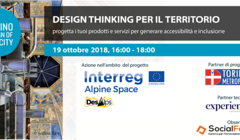 La rete di esperti di Des Alps sta sviluppando percorsi che possano facilitare l’adozione del Design Thinking (DT) da parte del PMI dell’area alpina. La Città Metropolitana di Torino è partner del progetto DesAlps e con il supporto tecnico di Experientia propone workshop gratuiti rivolti alle realtà imprenditoriali piemontesi per diffondere la conoscenza dell’approccio DT e co-progettare la sperimentazione sul territorio.