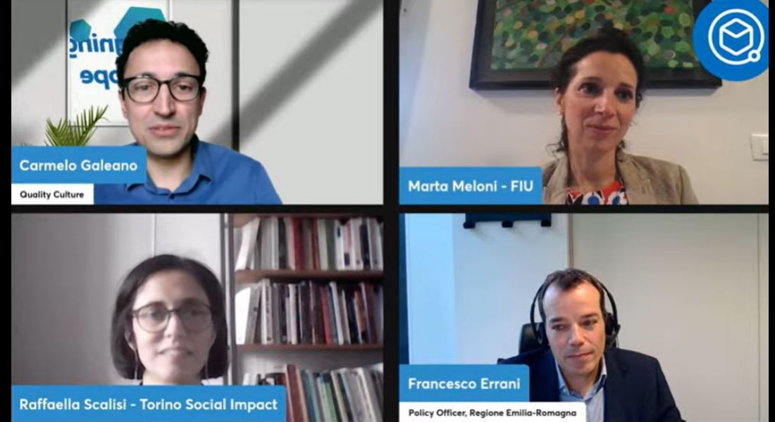Il panel è stato facilitato da Francesco Errani, Officer Regione Emilia-Romagna, che si è interfacciato con le relatrici Marta Meloni, Eu Project manager di Fondazione Innovazione Urbana e Raffaella Scalisi, advisor di Torino Social Impact.