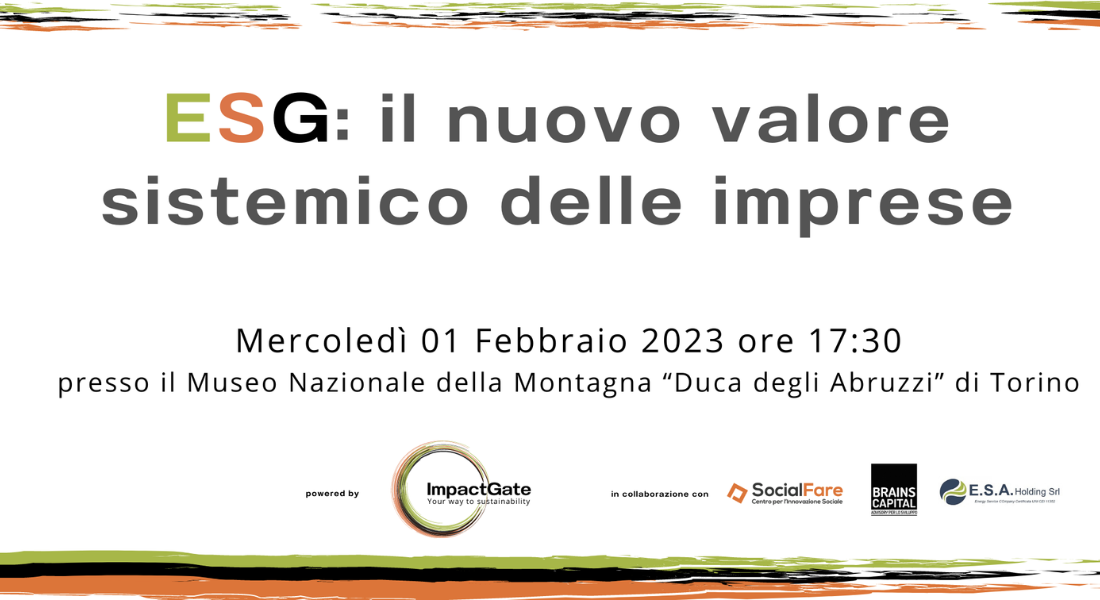 Sono alcuni degli argomenti che verranno sviluppati da professionisti ed esperti di tematiche ESG durante l’incontro dal titolo “ESG: il nuovo valore sistemico delle imprese” che si terrà mercoledì 1 febbraio alle ore 17:30 presso il Museo Nazionale della Montagna “Duca degli Abruzzi” di Torino. Un momento di approfondimento rivolto in particolare a imprenditori, rappresentanti delle associazioni di categoria, attori del mondo della ricerca e della Pubblica Amministrazione interessati a ragionare insieme sull’importanza di creare valore condiviso e benessere sociale attraverso l’integrazione della sostenibilità nel business tradizionale.
