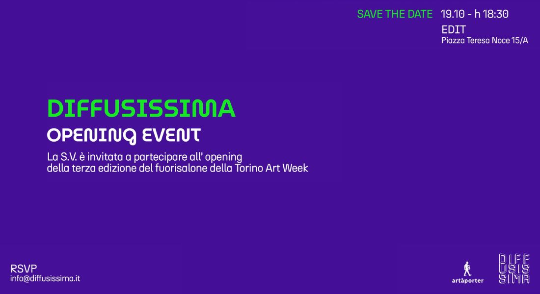 DIFFUSISSIMA si preannuncia come un’emozionante vetrina dell’arte contemporanea a Torino. In quanto partner della comunità di Artàporter, la presenza degli associati di Torino Social Impact arricchirebbe notevolmente questo evento culturale.