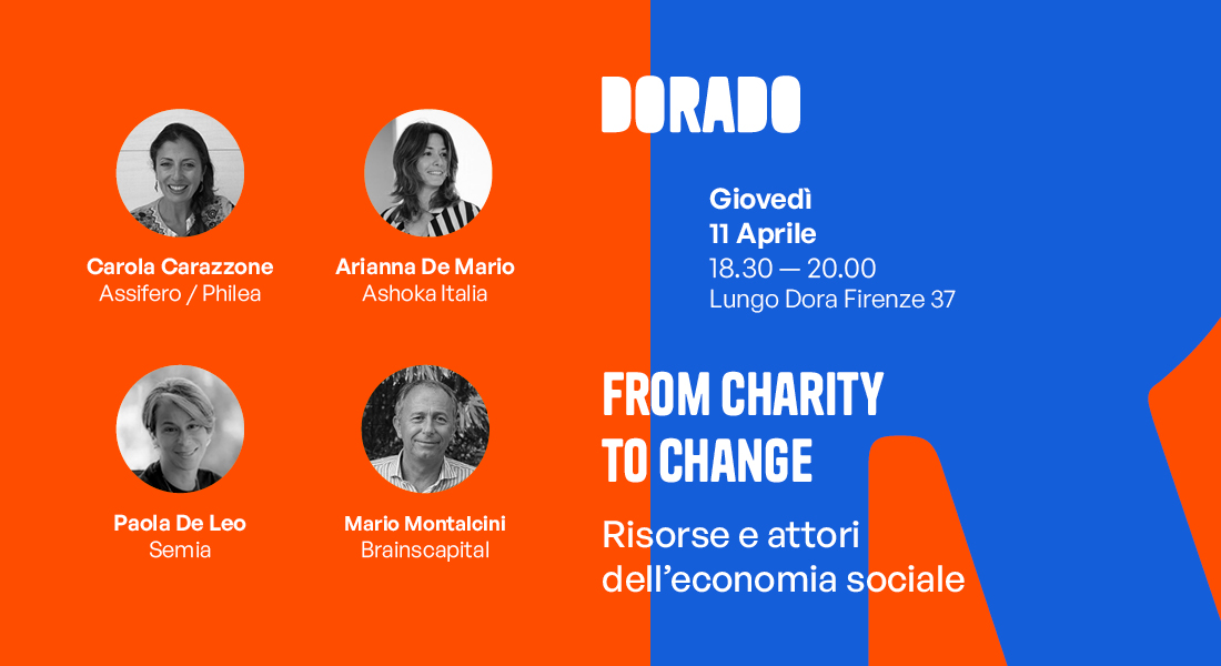 A queste e altre domande cercheremo di dare risposta giovedì 11 aprile, ore 18.30, con un evento in Dorado (lungo Dora Firenze 37) dedicato al ruolo strategico degli enti filantropici nel supporto alle imprese sociali e agli enti del Terzo Settore. Lo faremo coinvolgendo quattro professionisti che da anni si occupano di innovazione sociale, no-profit e sviluppo sostenibile: Carola Carazzone (Segretaria Generale Assifero) / Arianna De Mario (Director of Strategic Partnerships di Ashoka) / Paola De Leo (Fondatrice e Presidente di Semia) / Mario Montalcini (Founder e Amministratore Delegato di Brainscapital). Modera Luca Ballarini, Founder di Stratosferica.