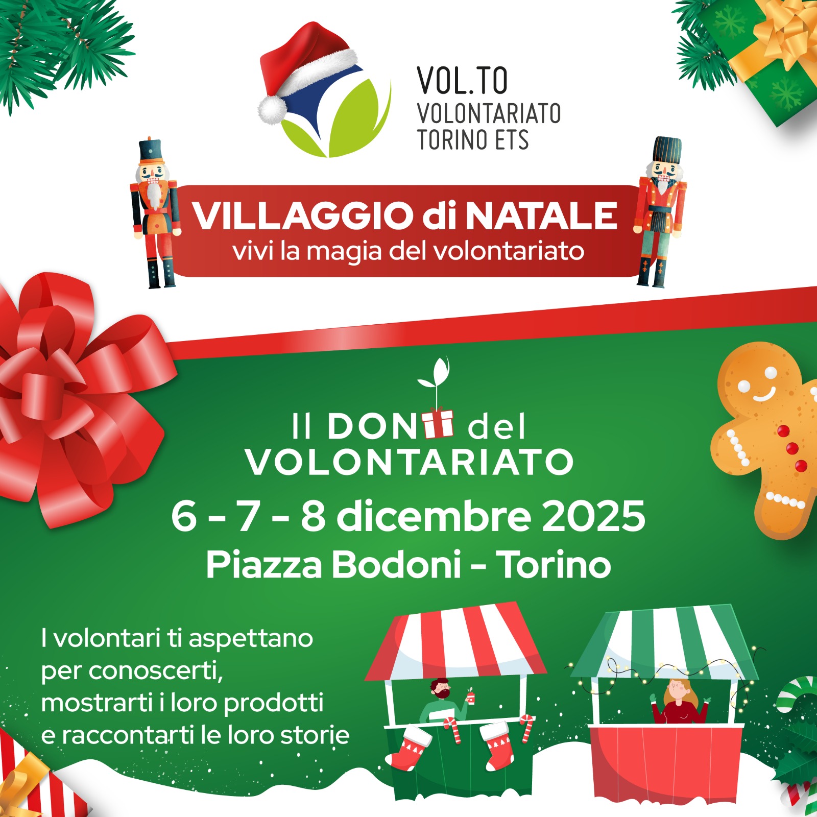 A seguire, nel fine settimana del 6, 7 e 8 dicembre, si terrà Il Dono del Volontariato, il grande villaggio di Natale che trasformerà piazza Bodoni in uno spazio dedicato alla solidarietà e all’incontro tra cittadini e associazioni. Dalle 10 alle 18, oltre 200 Enti del Terzo Settore presenteranno le proprie attività, le storie di impegno quotidiano e i prodotti realizzati per sostenere progetti sociali, culturali e ambientali.