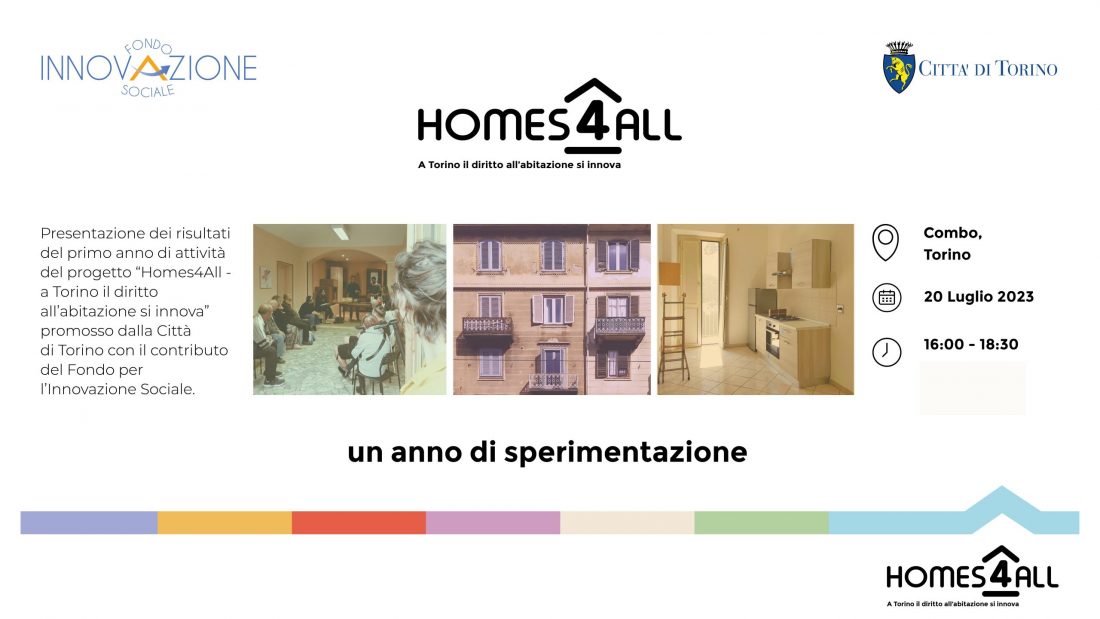 Il 20 luglio 2023 presso Combo, in Corso Regina Margherita 128 a Torino, si svolgerà un evento di presentazione dei risultati del primo anno di attività di “Homes4All – a Torino il diritto all’abitazione si innova”.