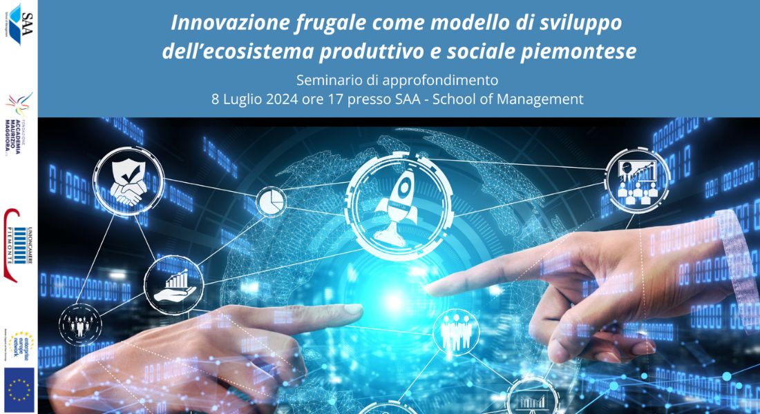SAA School of Management, Fondazione Accademia Maurizio Maggiora, Unioncamere Piemonte e Enterprise Europe Network sono lieti di invitarvi all’evento dal titolo “Innovazione frugale come modello di sviluppo dell’ecosistema produttivo e sociale piemontese” che si terrà l’8 luglio alle ore 17.