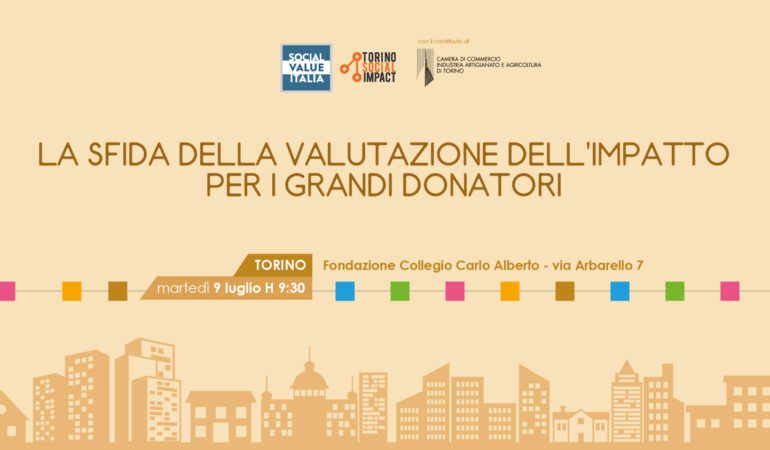Martedì 9 luglio, Social Value Italia e Torino Social Impact organizzano un incontro dal titolo LA SFIDA DELLA VALUTAZIONE DELL’IMPATTO PER I GRANDI DONATORI, dalle ore 9:30, presso la Fondazione Collegio Carlo Alberto a Torino.