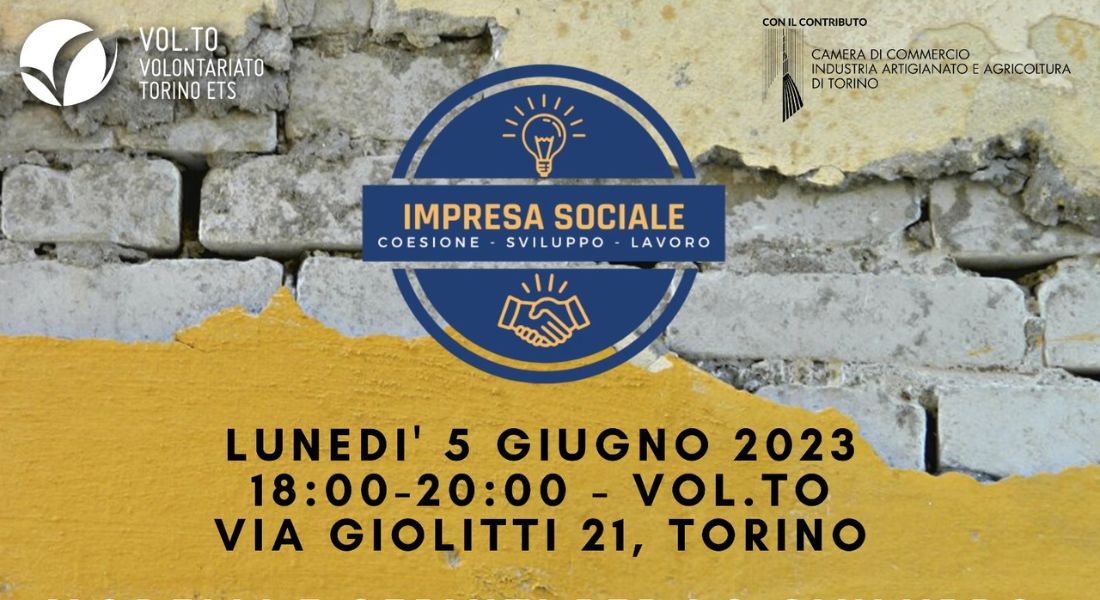 Lunedì 5 giugno negli spazi di Vol.To ETS in Via Giolitti 21 a Torino, dalle 18 alle 20, si terrà l’ultimo seminario di “Impresa Sociale – Coesione, Sviluppo, Lavoro”, progetto promosso da Associazione Volontariato Torino – Vol.To ETS con il sostegno della Camera di Commercio di Torino per far crescere idee imprenditoriali in campo sociale.