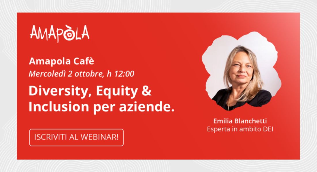 Fare bene fa bene. È questo il titolo del nuovo webinar online su Diversity, Equity, Inclusion (DEI) organizzato da Amapola, società di consulenza specializzata in sostenibilità e comunicazione. L’appuntamento da segnare in agenda è per mercoledì 2 ottobre alle ore 12 in diretta su Zoom. Per prenotare è necessario iscriversi qui.