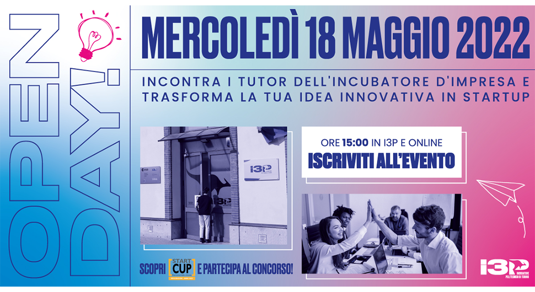 Hai un’idea innovativa e stai cercando gli elementi da cui partire per realizzarla? Partecipa all’Open Day di I3P, mercoledì 18 maggio 2022 alle 15:00 a Torino e in streaming online, per scoprire come far diventare la tua idea un vero e proprio progetto imprenditoriale!