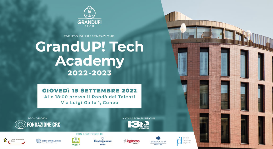 Sta per tornare GrandUP! Tech Academy, il percorso gratuito di formazione per futuri imprenditori e startup innovative: le opportunità di questa seconda edizione saranno illustrate durante l’evento di presentazione di giovedì 15 settembre alle 18:00 al Rondò dei Talenti di Cuneo.