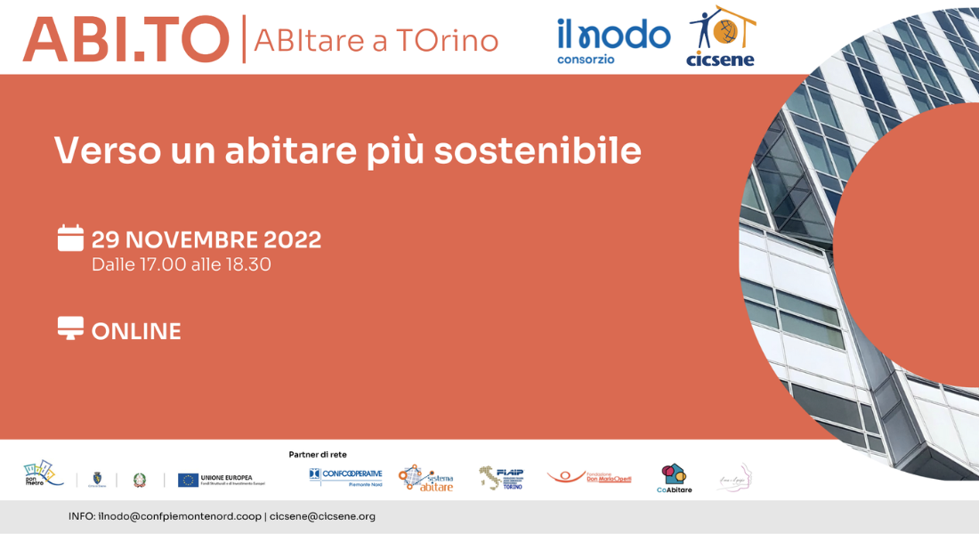 Il progetto ABI.TO è inserito all’interno del Programma Operativo Nazionale Città Metropolitane 2014-2020 (PON Metro), adottato dalla Commissione Europea, con l’obiettivo di creare maggiore inclusione sociale. Inoltre, è promosso e sostenuto dal Comune di Torino e nasce dall’impegno del capofila IL NODO cscs, dal partner CICSENE e da una fitta rete di collaborazione territoriale composta da Confcooperative Piemonte Nord, FIAIP (Federazione Italiana Agenti Immobiliari Professionali), Ass. Il rosa e il grigio, Fondazione Operti, Sistema Abitare, COabitare.