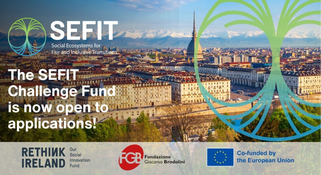 La Fondazione Giacomo Brodolini insieme ai partener Rethink Ireland, Città di Torino e Città di Cork è felice di annunciare il lancio della Open Call all’interno del progetto SEFIT – Social Ecosystem for Fair and Inclusive Transition che riunisce autorità locali, innovatori sociali e cittadinanza per promuovere un cambiamento trasformativo ecologico e digitale che sia equo all’interno delle città di Torino e Cork.