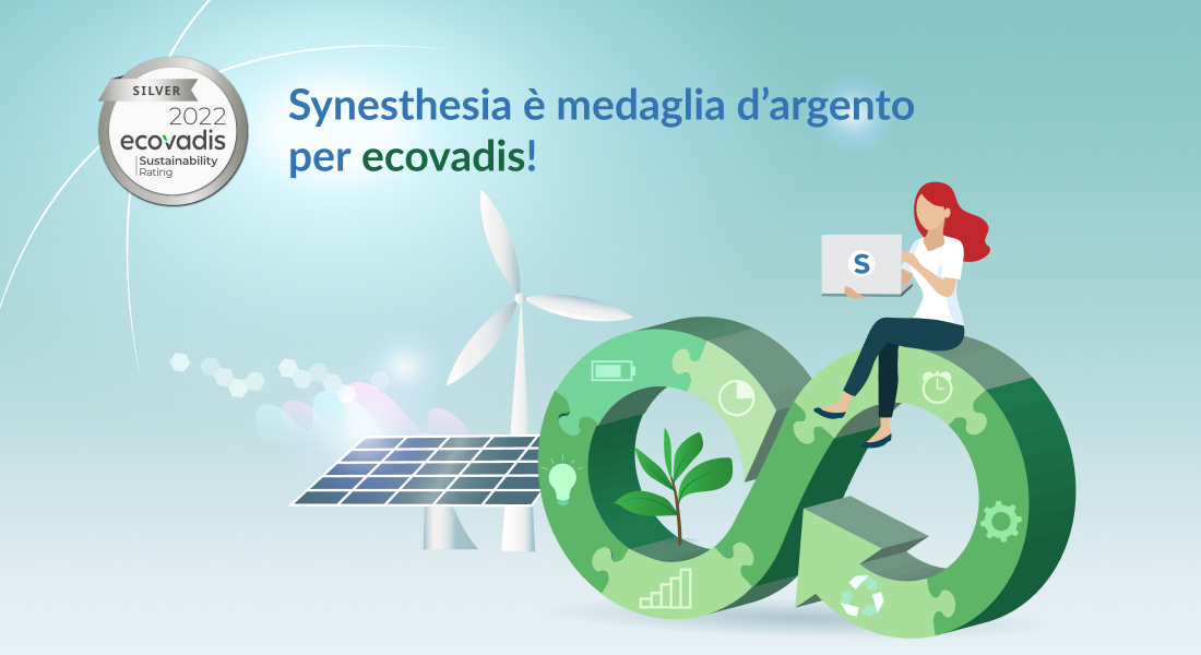 Synesthesia, che nel gennaio 2022 ha concluso l’iter legale e societario diventando Società Benefit, ha ottenuto un punteggio molto soddisfacente per la sostenibilità, grazie al quale Ecovadis ci ha attribuito il primo riconoscimento: la medaglia d’argento.